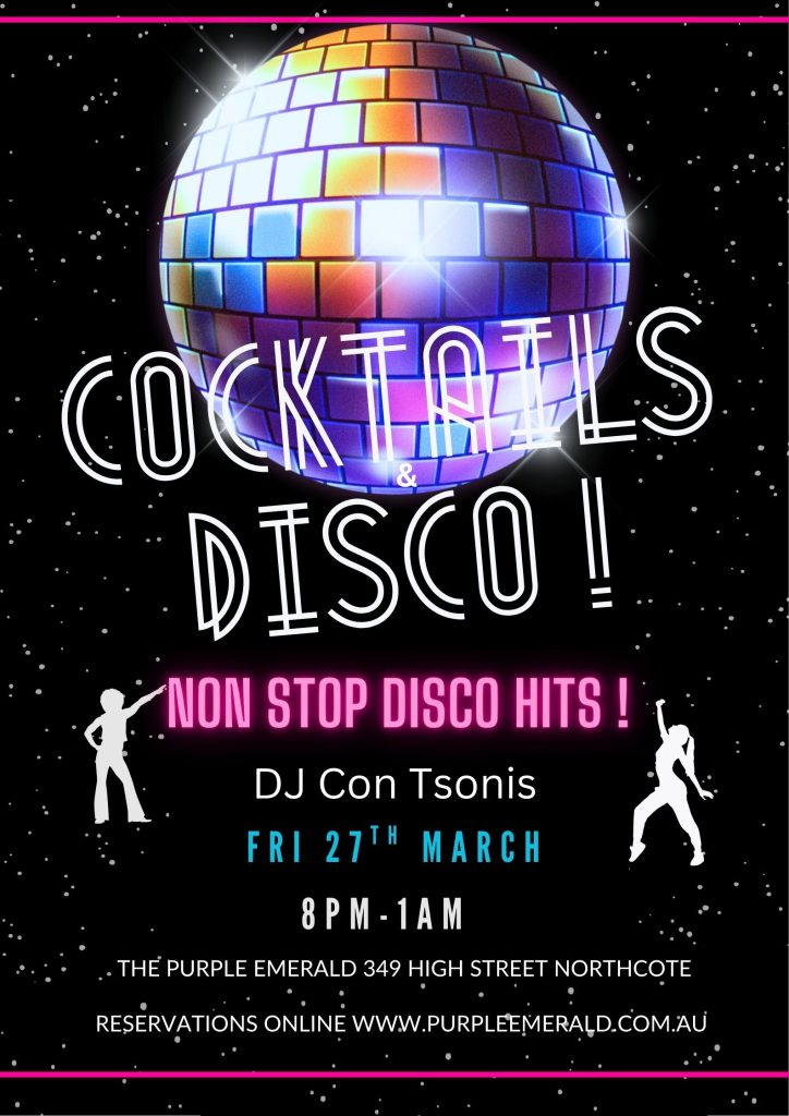 DJ Con Tsonis will be playing nonstop disco hits from 8:00pm till 1:00am